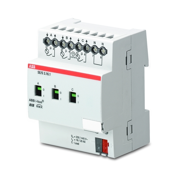Využívá bezpotenciálových kontaktů ke spínání 3 nezávislých elektrických zátěží prostřednictvím sběrnice KNX.