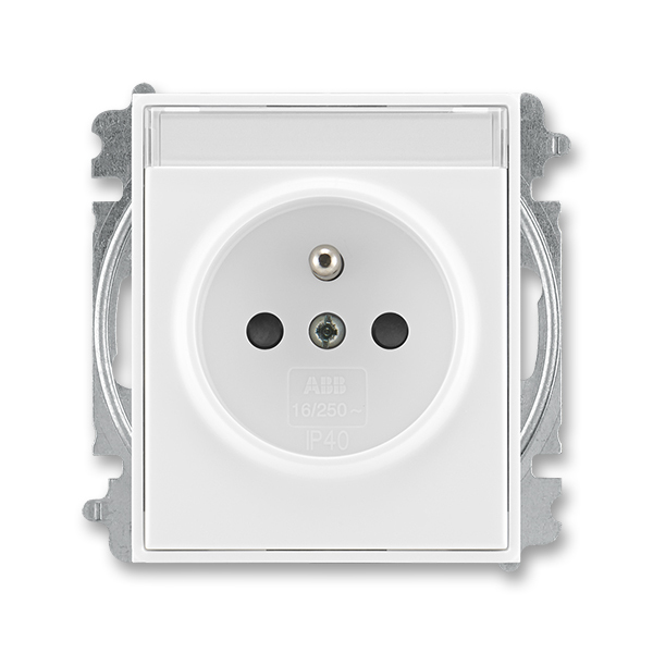 Zásuvka jednonásobná s ochranným kolíkem, s clonkami, s popisovým polem