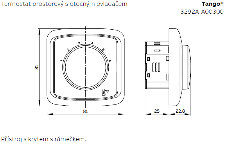 Kryt termostatu prostorového s otočným ovladačem