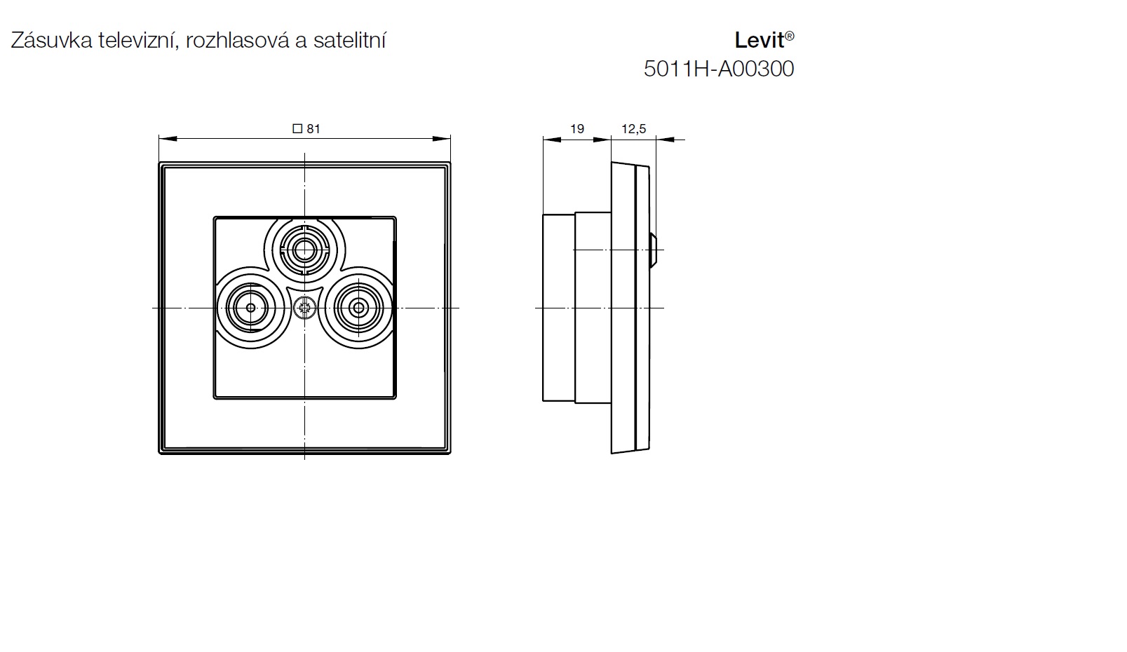 Kryt zásuvky anténní, s vylamovacím otvorem