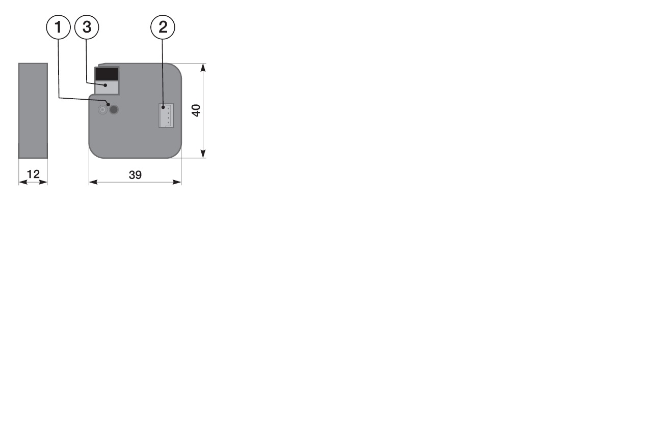 Rozměry: (v × š × h): 39 × 40 × 12 mm (lze umístit do krabice KU)