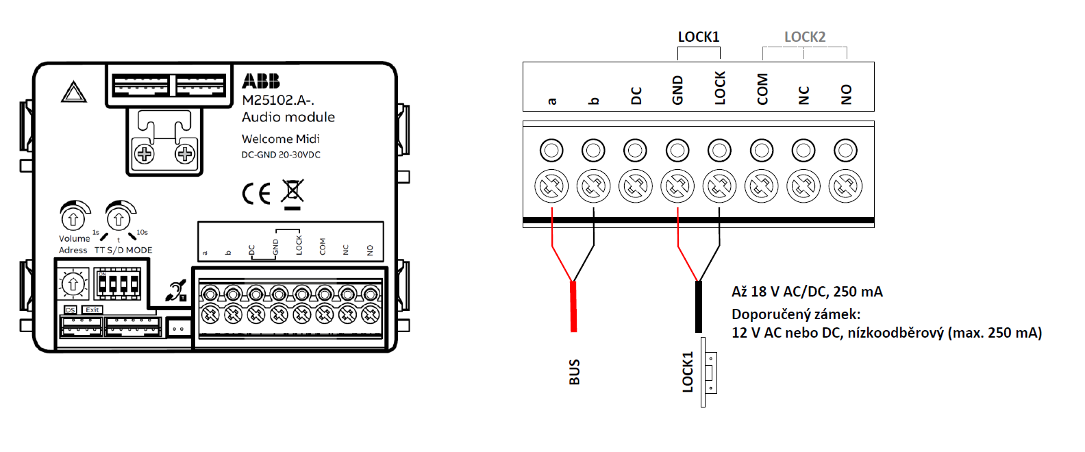 Svorky pro připojení zámku. Přídavný bezpotenciálový kontakt pro druhý zámek.