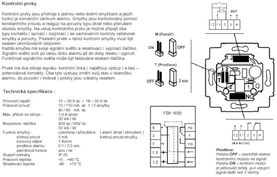Každá smyčka má světelnou signalizaci a reset. Napěťový a bezpotenciálový výstup. Volitelná časová prodleva a paměť.