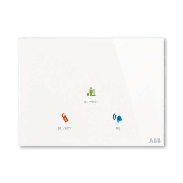 Volně programovatelné ikony a/nebo text: „Nerušit“, „Úklid“, „Zvonek“.