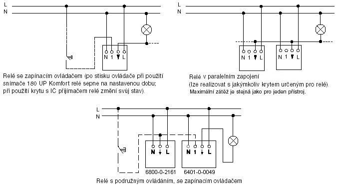 Pro vakuové nebo halogenové žárovky 230 V AC, pro malonapěťové žárovky připojené přes konvenční (vinutý) nebo elektronický transformátor, pro zářivky.