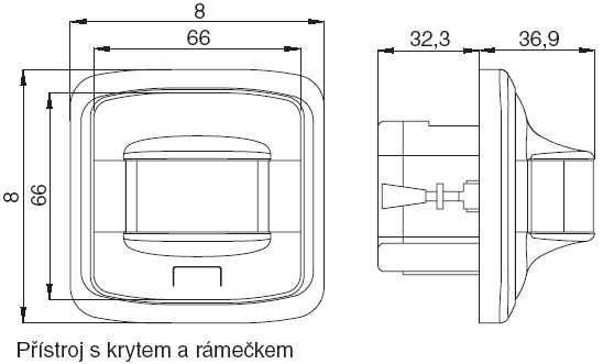 Nastavitelné hodnoty (na zadní straně krytu): prahové osvětlení (1 - 1000 lx), citlivost snímání, zpoždění vypnutí (5 s - 10 min.)