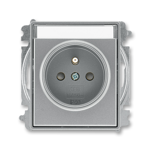 Zásuvka jednonásobná s ochranným kolíkem, s clonkami, s popisovým polem
